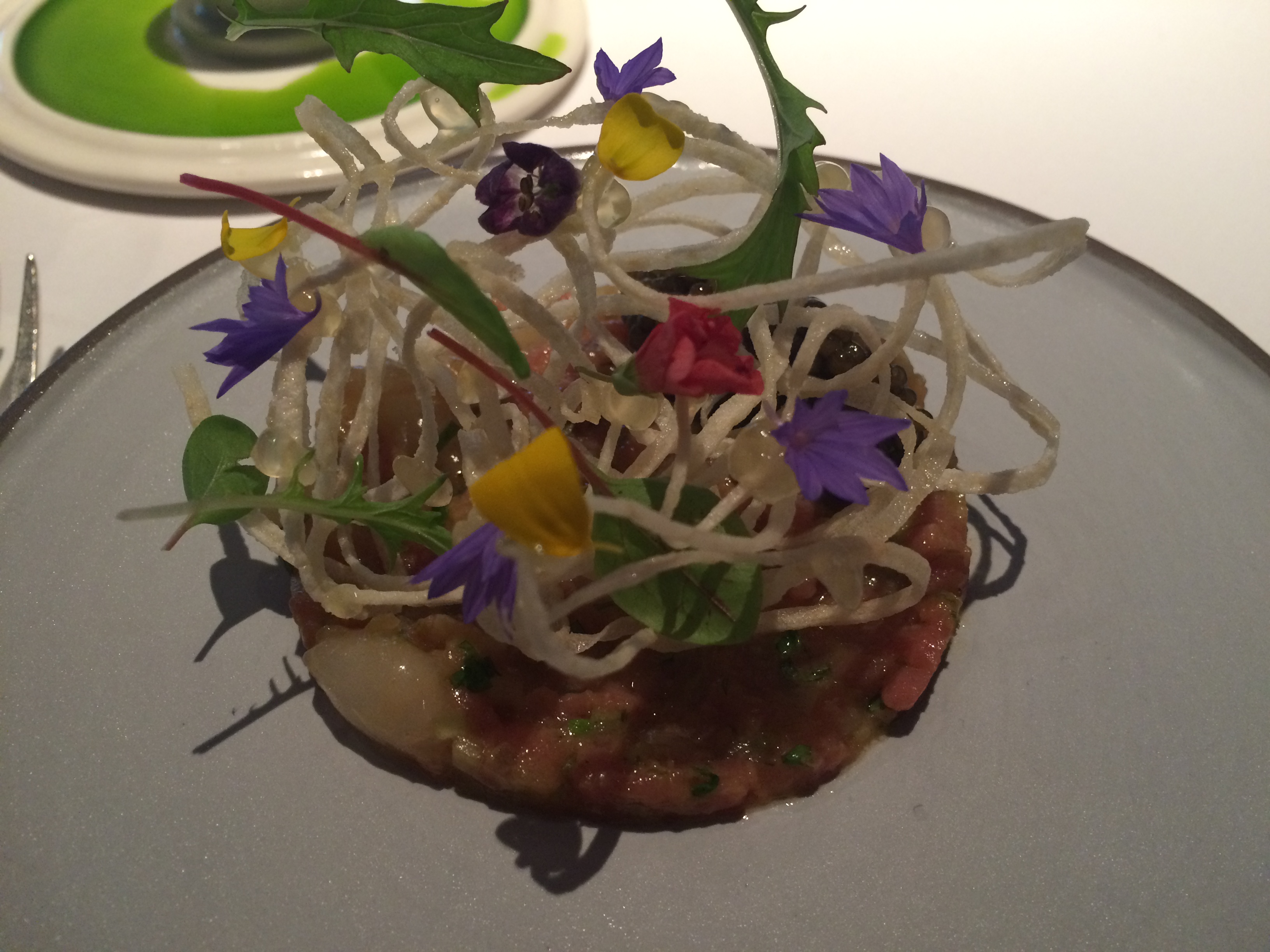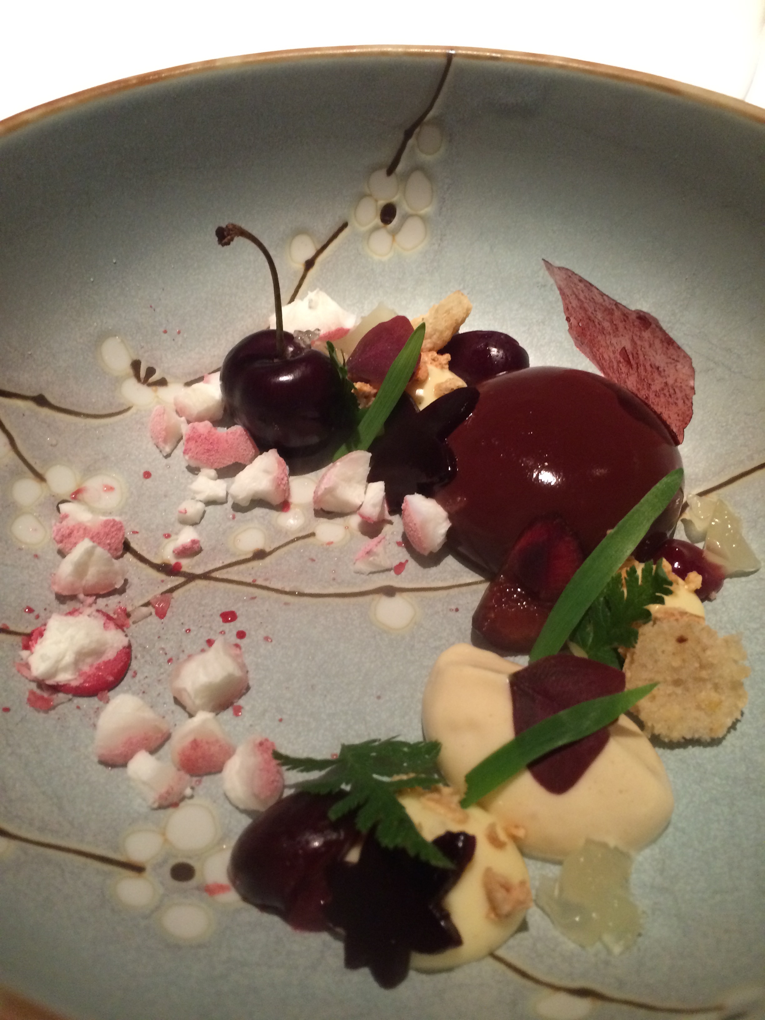 The prettiest dish of the night was clearly the tartar. Yes, I ate raw meat. It was incredible. As good as this looks, it tasted better. I forgot to get a picture of my pea dish (Bob has some seafood plate that he loved) but I did get a picture of one of the desserts – various berries in different preparations.